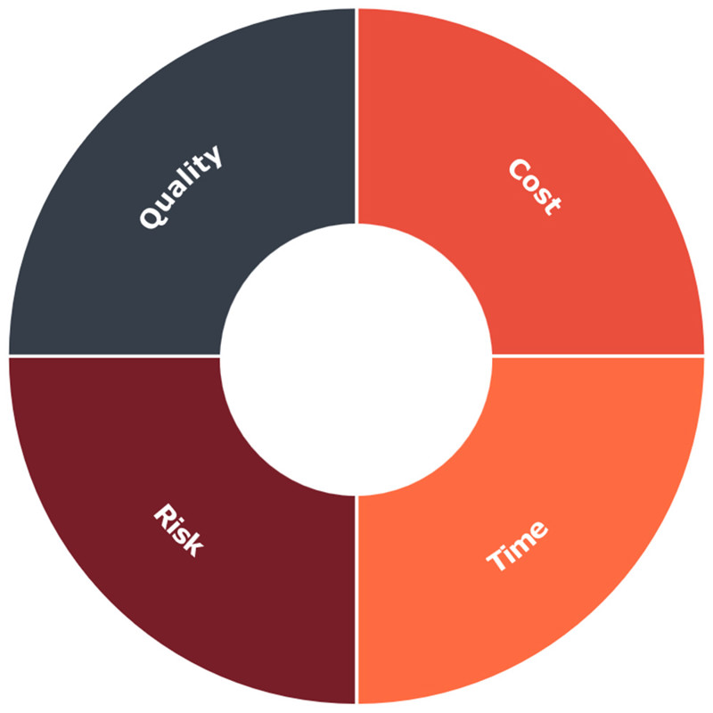 Also, try to balance the various priorities in a process: costs, time, quality, and risk, see figure 2.