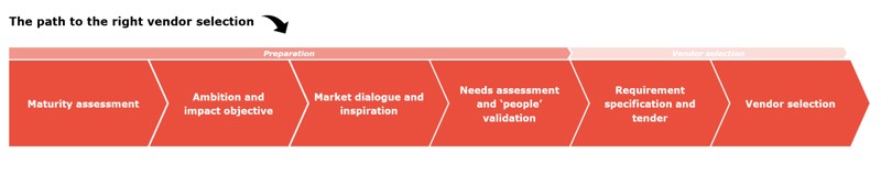 Here, we move out of the preparatory phase, which now serves as the foundation for translating all identified needs into a detailed requirement specification. By structuring the requirements as user stories, you clearly define which user group’s needs are being addressed, the functionality requirements, and what the user should be able to achieve as a result. The requirement specification is then sent out to tender to the vendors you have identified as qualified to deliver the desired solution.