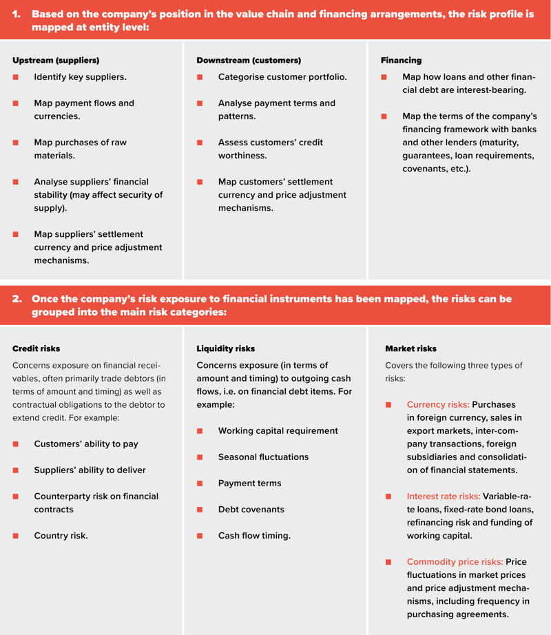 In an era of increased global uncertainty, geopolitical tensions and rapid market changes – factors which all affect financial risks – effective risk management has become a necessary discipline in any Finance organisation. This is both because requirements for risk management are written into the Danish companies' act, amongst other regulations, and because it can become a costly affair which, in the worst case, may threaten the company's existence if risks are not adequately managed.